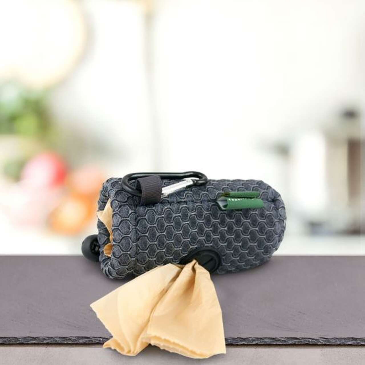 Dispenser di sacchetti igienici funzionale e di alta qualità, realizzato in materiale mesh 3D in collaborazione con HUNTER. Particolarmente leggero Con una piccola clip per un fissaggio flessibile a vestiti o guinzaglio Riempibile con rotoli di sacchetti igienici in commercio (non inclusi) Facile estrazione dei sacchetti igienici Peso: circa 20 g Dimensioni: circa 9,5 cm x 5 cm